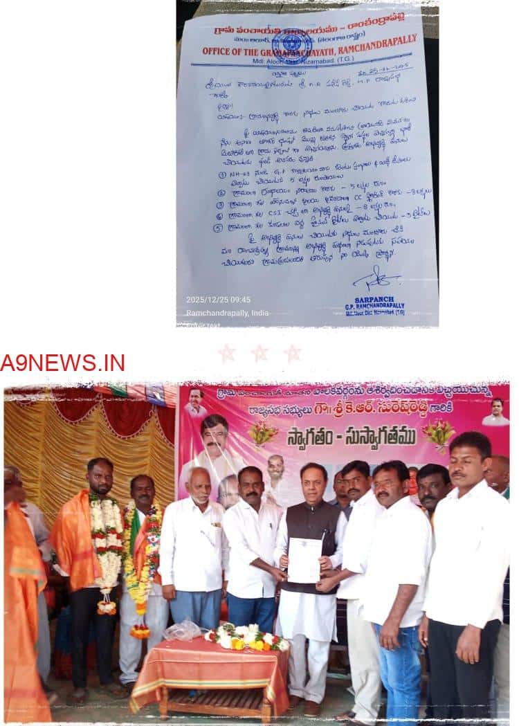 రాంచంద్రపల్లి గ్రామ అభివృద్ధికి ఎంపీ కే.ఆర్. సురేష్ రెడ్డిని ఆశ్రయించిన నూతన పాలకవర్గం….