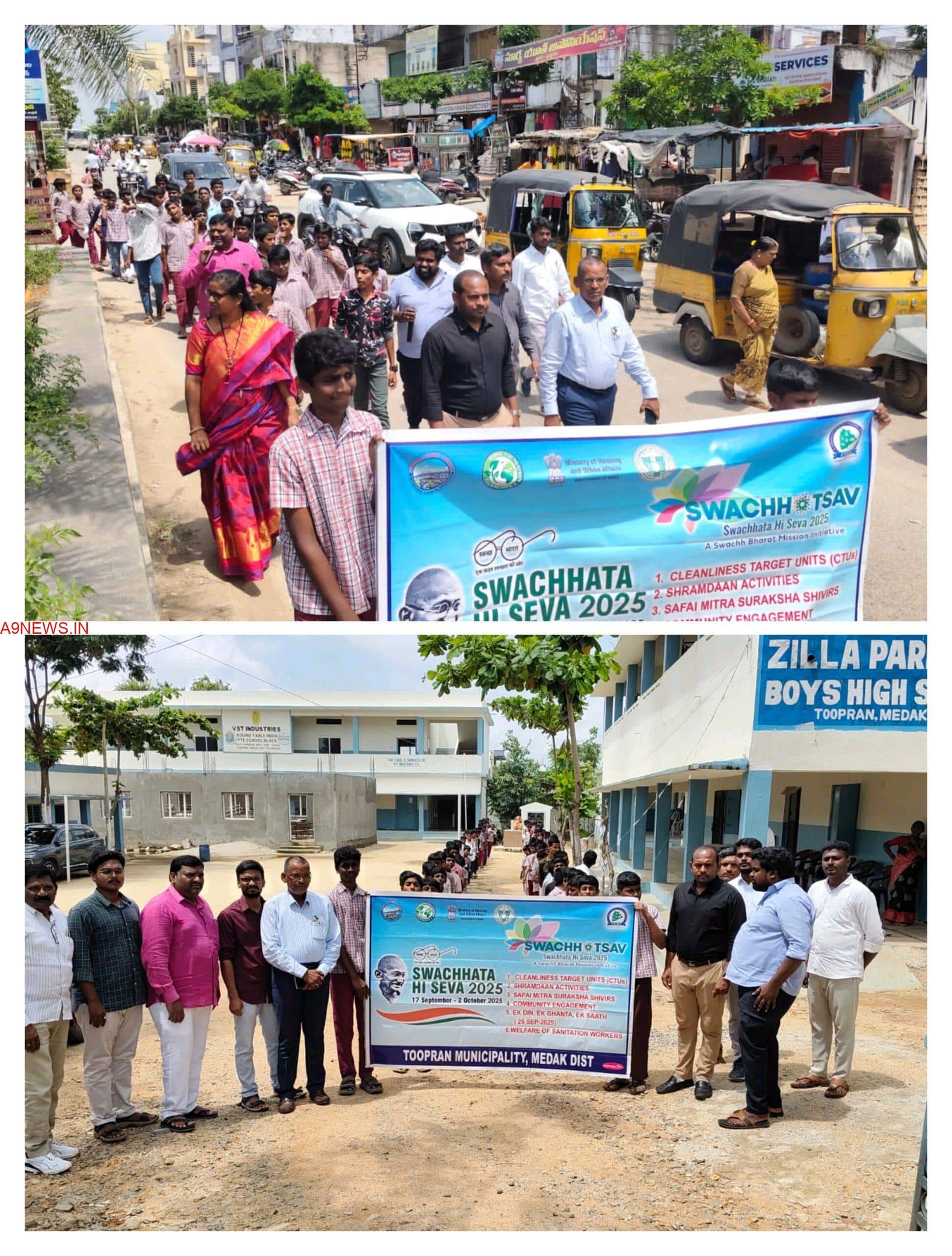తూప్రాన్ మున్సిపల్ కమిషనర్ గణేష్ రెడ్డి ఆధ్వర్యంలో స్వచ్ఛత హీ సేవ ర్యాలీ…..