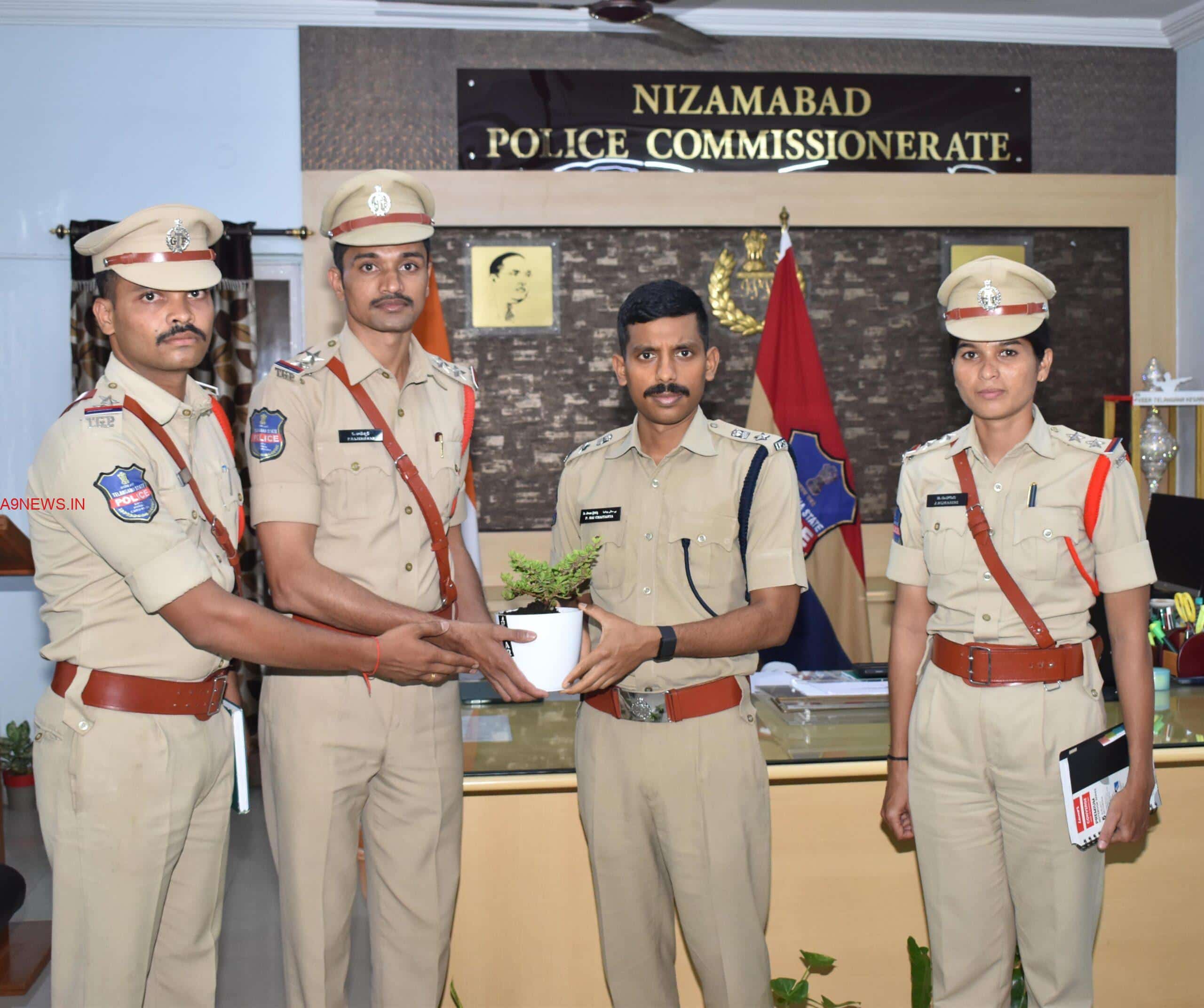 నిజామాబాద్ పోలీస్ కమిషనరేటు వరిధిలోని మొదటి సారి పోలీస్ స్టేషన్ ఎస్.ఐలుగా బాధ్యతలు తీసుకున్న తరువాత గౌరవనీయులు నిజామాబాద్ పోలీస్ కమిషనర్ శ్రీ పి.సాయి చైతన్య, ఐ.పి.యస్., గారిని పువ్వుల మొక్క ఇచ్చి మర్యాద....