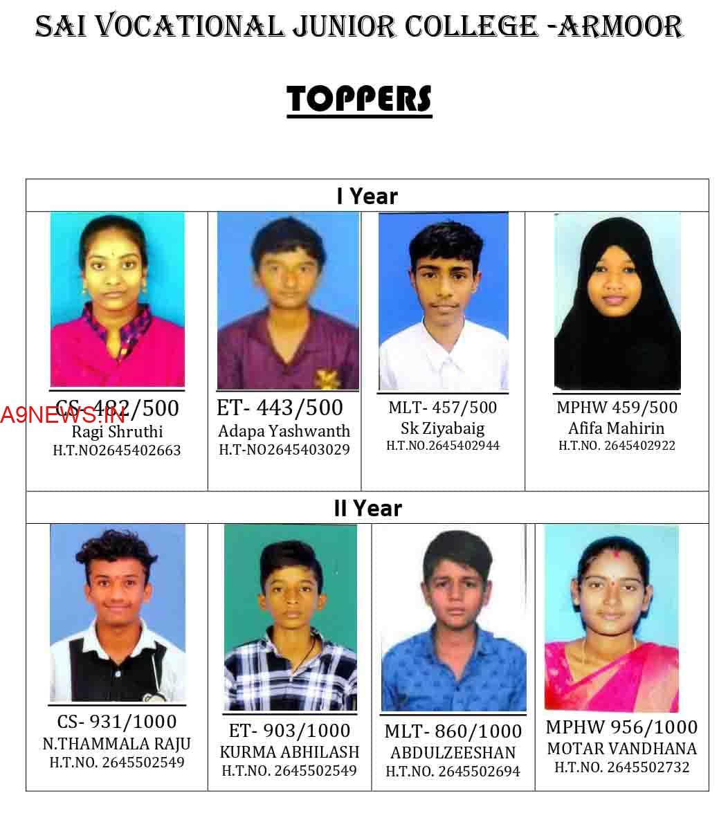 అదేవిధంగా ఇంటర్ మొదటి సంవత్సరం ఎంపీసీ విభాగంలో 470 మార్కులకు గాను 469 మార్కులు సాధించి రాష్ట్రంలో మొదటి స్థానం మార్కులు సాధించారు. అభినయ 465 సానియా 465 సుమయ్య మహావిశ్ 465 మార్కులు సాధించారు. బైపీసీ విభాగంలో అబ్దుల్ ముదస్సిర్ 436 నిస్సి 436 ఈ ప్రాణం 436 కే అనిష్ 435 మరియు కె శ్రీ వల్లి 435 మార్కులు సాధించారు. అలాగే ఇంటర్ మొదటి సంవత్సరం సిఈసి విభాగంలో 500 మార్కులకు గాను కే ఇలిషా రాణి 485 మార్కులు సాధించారు. ఈ సందర్భంగా విద్యార్థులను వారి తల్లిదండ్రులను సన్మానించడం జరిగింది ఈ యొక్క కార్యక్రమంలో కళాశాల చైర్మన్ అల్జాపూర్ శ్రీనివాస్ సెక్రెటరీ అల్జాపూర్ దేవేందర్ వైస్ చైర్మన్ అల్జాపూర్ లక్ష్మీనారాయణ కోశాధికారి గంగాధర్ డైరెక్టర్ వీరేంద్ర ప్రిన్సిపల్ ఎస్ నాగేశ్వరరావు మరియు అధ్యాపక బృందం పాల్గొని విద్యార్థులను అభినందించడం జరిగింది.